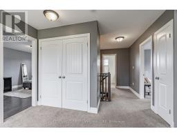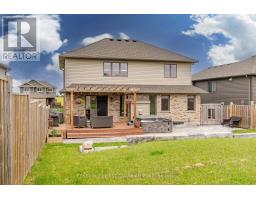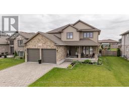 Located in the Town of Lucan, in the Ridge Crossing subdivision, this custom-built home offers a functional layout with space for the whole family. Featuring 4+1 bedrooms and 3.5 bathrooms, the home provides a traditional floor plan with defined living areas throughout. The main level includes a family room with a gas fireplace, a separate dining room, and a kitchen with quartz countertops, a pantry, and a large island overlooking the backyard. The primary bedroom is conveniently located on the main floor and includes a walk-in closet and an ensuite bathroom. Upstairs, you'll find three additional bedrooms, a loft area suitable for a home office or play space, and second-floor laundry. The basement adds extra living space with a rec room and an additional bedroom, ideal for guests or flexible use. The fully fenced backyard features a deck, stamped concrete, and armour stone landscaping. An attached two-car garage provides parking and storage. Conveniently located close to Wilberforce Public School, future soccer fields, and local amenities. Approximately 20 minutes to North London and 30 minutes to Grand Bend and the shores of Lake Huron. Recent updates include new luxury vinyl plank flooring on the main level and new carpet on the second level. (id:39382)